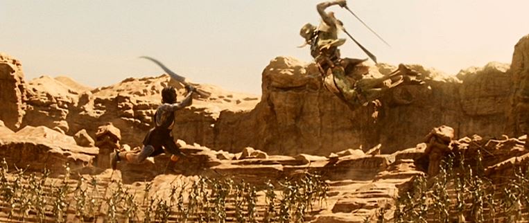 But the battle ends victoriously as Dejah’s father arrives with his airship and strikes the ground scaring the Martian…umm…Barsoomian creatures off. Not only has he come with his army, but the EVIL Sab Than has arrived with him also. Apparently, Sab Than has seen the error of his ways and wants to repent for it via a marriage with Dejah. Hmm…why is this news; wasn’t this the exact same thing he wanted in the beginning of the film? Is the only difference that now he repents for his actions? Is he even sincere in his repentance? Oh well, I’m sure we’ll find out later.