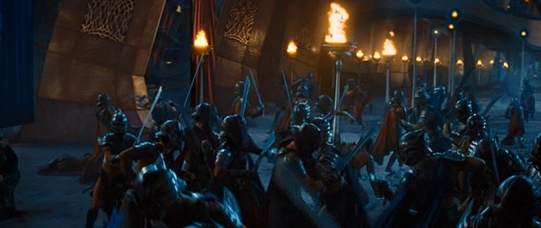 But again, John Carter isn’t swayed by any of this. So he takes over now and leads Sola and Dejah in the opposite direction. They soon come across a river that apparently leads to the Gates of Iss. They traverse the waters and end up finding the Gates of Iss which look more like Disney’s Animal Kingdom’s “The Tree of Life”, if it were used as a landing strip for Martian…umm…Barsoomian airships.
