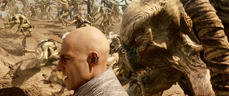 So the film opens up on the landscape of Mars, known as Barsoom, where a narrator explains to us what’s going on. Basically, life DOES exist on Mars…umm…Barsoom, but it’s not a very peaceful life. There exists a city on Mars…umm….Barsoom named Zodanga that’s a bit of a usurper. Their leader, Sab Than, played by Dominic West, goes around to all the cities of Mars…umm…Barsoom and attacks them.