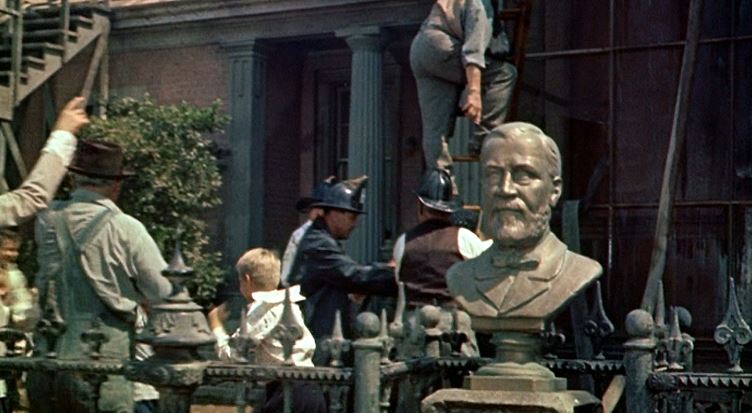After shopping for clothes one day, Aunt Polly and Pollyanna hear of bad news. Apparently the fire brigade has been called out to the Harrington House, a local orphanage that the original Harrington constructed many years ago. Oh look there’s his bust now!