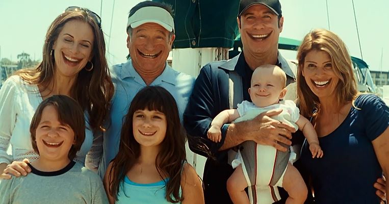 And the usual happy ending happens: Robin Williams wins back Vicki and the kids’ love and he and John Travolta remain friends and business partners!