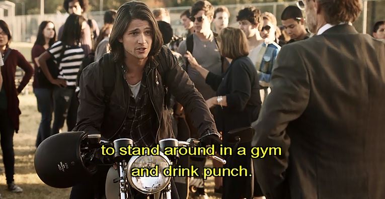Oh gee, this hot Jackson Rathbone lookalike on a motorcycle couldn’t possibly be Nova’s future love interest, could he? I mean what high schooler could POSSIBLY like a hot bad boy on a motorcycle?