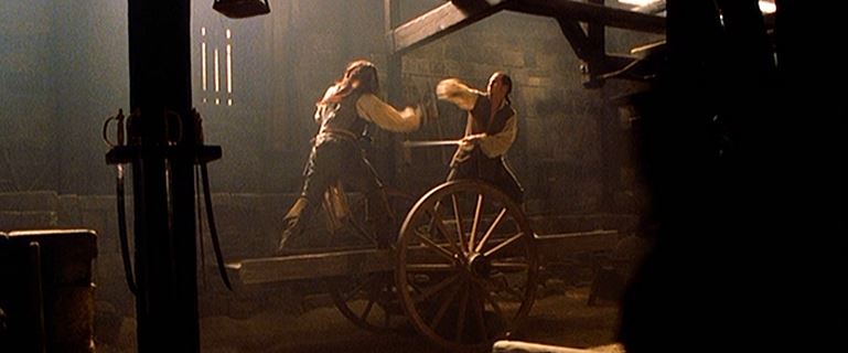 Will recognizes Jack to be the pirate that the soldiers are looking for and proves himself quite skillful with the sword as the two have a duel in the blacksmith’s shop.