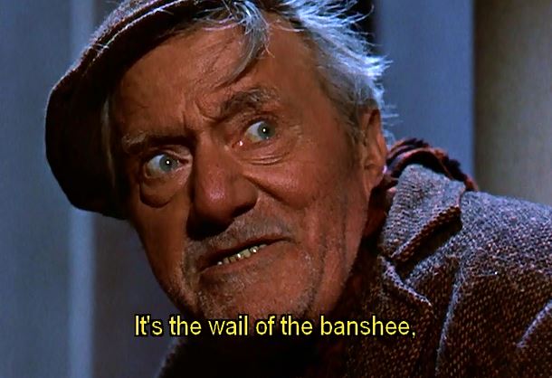 Yep, the legendary banshee lets out a frightening wail whenever someone is about to die. Darby’s wife died the night that a banshee was heard and now he’s frightened that it’s Katie’s turn now. He and Michael carry Katie back home to rest and get the priest to look after her, when suddenly there’s a knock on Darby’s door.