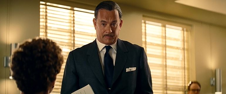 When she reaches Walt’s office, we’re greeted by Tom Hanks with a mustache.