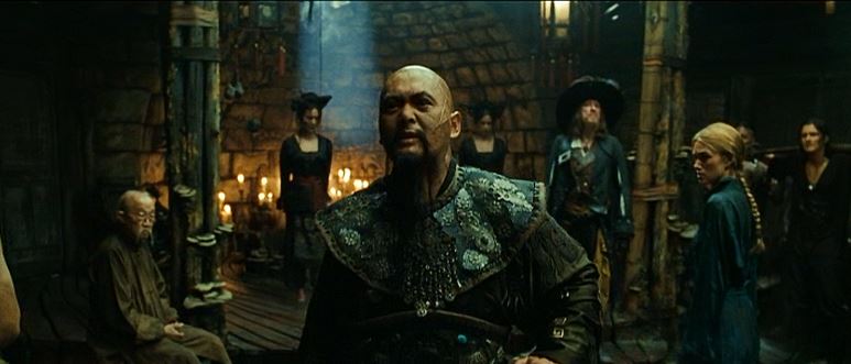 Captain Barbossa tells Sao Feng that they want to borrow a ship and a crew from him so that they can rescue Jack Sparrow from Davy Jones’ Locker as the time to convene the Brethren Court has arrived. The Brethren Court is a court consisting of the nine pirate lords who meet every so often when trouble arises to discuss matters. This time, they need to discuss their future as they know that the British government is out to get them in their mission to end piracy once and for all. But, the Court can’t convene unless ALL nine pirate lords show up including Sao Feng AND Jack Sparrow. At first, Sao Feng isn’t too fond of this idea and refuses.
