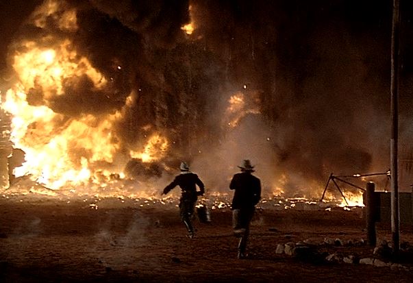 Trouble arises however, when Marshal Hitchcock appears on the scene and starts shooting at Theodore and Amos. Some of the officers try to hold Marshal Hitchcock down while Theodore and Amos try to run away. Shots are fired and one thing leads to another until the entire fort is burned down,