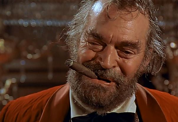 While at the prison, Theodore and Amos accidentally come across a secret door that leads to an ornate room built under some caverns. They happen to stumble upon a meeting of what seems to be robbers led by a man known as Big Mac, played by Jack Elam.