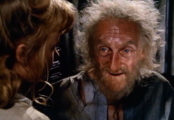 The sea takes our friends to the Maori settlement where they too are taken as prisoners. In the lock-up there, they come across Bill Gaye, one of the mates of Captain Grant who is….not 100% sane. He’s played by Steptoe himself, Wilfrid Brambell.