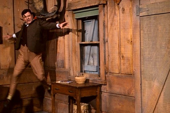 After D.J. leaves the room in a rage, a passing-by traveling showman, Horatio Quaxton, played by Sean McClory, discovers the gnomes in D.J.’s hotel room. He takes advantage of D.J.’s absence to kidnap the gnomes to use in his show.