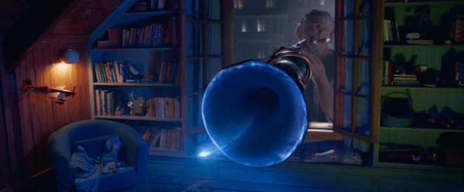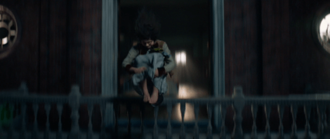 Sophie won’t accept this though, so she decides to try something. She jumps from the second story of the orphanage to the ground below as the BFG is supposed to have incredible hearing and is sure to hear her and come in time to save her from splatting to the floor, right? Well, she tries it anyway and jumps.