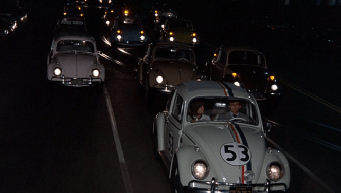 Meanwhile, Herbie has driven off to find Willoughby and Nicole to take them back to the firehouse to fight off Mr. Hawk and his men. Along the way, Herbie picks up his own army of Volkswagen Beetles!