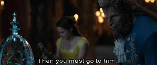 Speaking of Belle, another issue I had is that the characters of Belle and the Beast were written differently compared to the animated film, as if they’re different characters. One of the biggest examples of this, to me, is the scene where Belle discovers that her father is being taken to the asylum. In the animated film, when Belle realizes that her father may be dying in the woods, the Beast doesn’t automatically give her permission to leave. He ruminates the decision and you can see it in his eyes and hand as he passes it over the glass enclosure where the rose is being kept. After a few seconds, only then does he tell her to go to her father, and that he even does hesitantly!