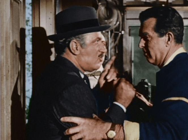 Because of the Flubber, Medfield wins the basketball game! But, Professor Brainard isn’t able to explain things to Betsy that night though. As he flies home after the game, he is spotted by the greedy banker, Alonzo P. Hawk, played by Keenan Wynn. Mr. Hawk had been interested in tearing down Medfield College (as he has a lot of money invested it int), but now has a better idea. The next day, he visits Professor Brainard at his house and tells him what he saw. He suggests to the Professor to hand over the secret formula to him and together, they could make heavy financial gains, even if selling Flubber to enemy governments! Professor Brainard is offended by this and rejects Mr. Hawk’s proposal which, of course, makes Mr. Hawk quite angry.
