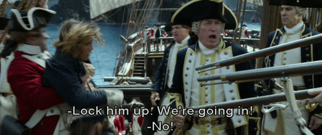 This effort ends in failure though and Jack’s crew decides to leave him, including Gibbs, played once again by Kevin McNally. It seems that Jack Sparrow has lost his “Jack Sparrow-ness”, so much so that he even trades his beloved magical compass for a drink. It turns out giving up the compass was what breaks Salazar’s curse and he and his ghostly crew are now free to find Jack Sparrow and kill any pirate they come across along the way.