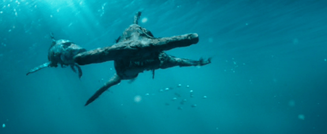 Will Turner, played by Orlando Bloom, was cursed at the end of the third film to be the captain of the Flying Dutchman, a ghostly ship that can only surface every so often. Henry has since been studying pirate legends and lore to find a way to break this father’s curse and he believes he’s found the answer: the Trident of Poseidon. The Trident of Poseidon is said to be able to break any curse, but Will Turner doesn’t believe that it exists and warns Henry from even seeking Captain Jack Sparrow’s help to find it. He then tells his son to go back home before the ship sinks again.