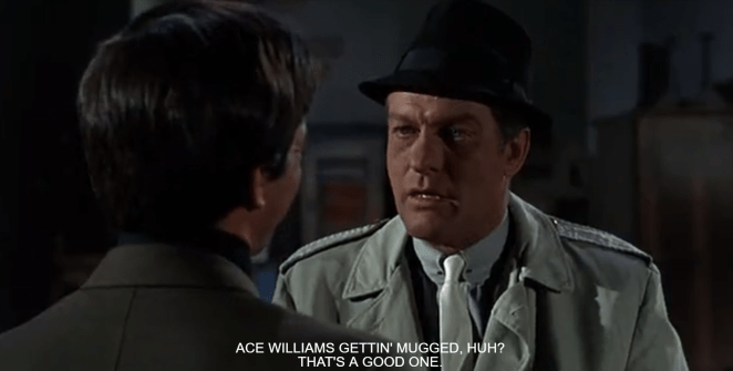 As the night goes on, more trouble arrives for Jack when the real Ace Williams, played by Jack Elam, shows up at the mansion. Jack plays it off as if this new Ace Williams is a phony, but Mr. Smooth and the other guys aren’t sure whom to believe at the moment. The gangsters then come up with an idea of locking both Aces in the darkened library and the one that walks out alive will be the real Ace.