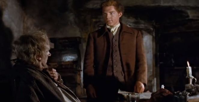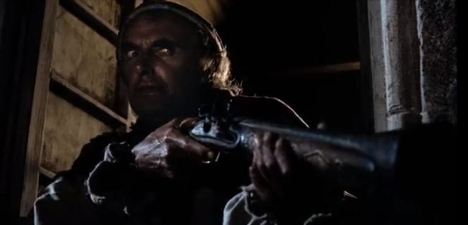 Apparently, there is a man in town called Colin Roy Cambell, aka the Red Fox, played by Andrew Cruickshank. The Red Fox has been sent to this area with a few soldiers to fight the rising surge of Jacobites that thrive in this area. As luck would have it, David bumps into the Red Fox on his journey. The Red Fox inquires as to where David is going and where his loyalties lie, but a shot from the nearby forest renders him dead.