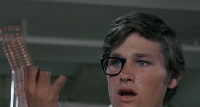 As the film opens up at Midfield College, we see our main college protagonists gathered around a walkie talkie eavesdropping on a board meeting in the Dean’s office. The leader of this group of college students is Dexter Riley, again played by Kurt Russell. Other noteworthy members of the group include Frank Welker in a rare live appearance
