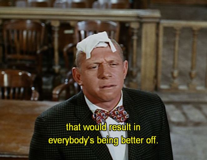 Because of this, Merlin Jones is sent up before the honorable Judge Holmsby, played by Leon Ames. Judge Holmsby also doesn’t agree with Merlin’s reasons for wearing it while driving and decides to suspend his driver’s license for a short time.