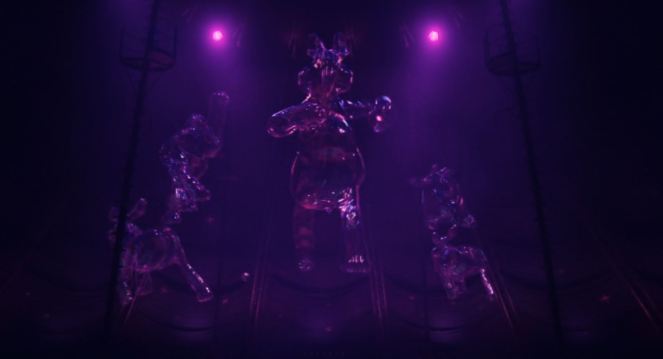 It takes some time, but eventually Colette is able to ride atop Dumbo. They showcase this at the next show wherein Mr. Vandevere has invited an investor, Mr. Remington, played by Alan Arkin, to view the performance. He’s hoping that Mr. Remington will finance his further plans for Dreamland. But before we get to that, it’s time for the main reason why Tim Burton had to direct this film: a Pink Elephants on Parade tribute!
