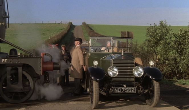 Priory gets the train to stop by parking the car along the railway tracks in front of it. He never realized though that Lady St. Edmund would decide to stay in the car until the train stops.