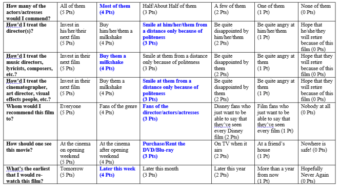 So, my final score for this film is 24/35 = 68.57% (D+) !