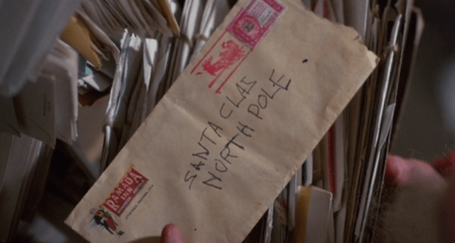 He tells her to give her mother the letter and that may solve matters. Somehow Abbie returns home and her mother is happy to find her again (and probably wondering why she doesn’t childproof her front door). After she puts Abbie to sleep, she finds the letter in her jacket and recognizes it as the one she wrote to Santa when she was a kid.