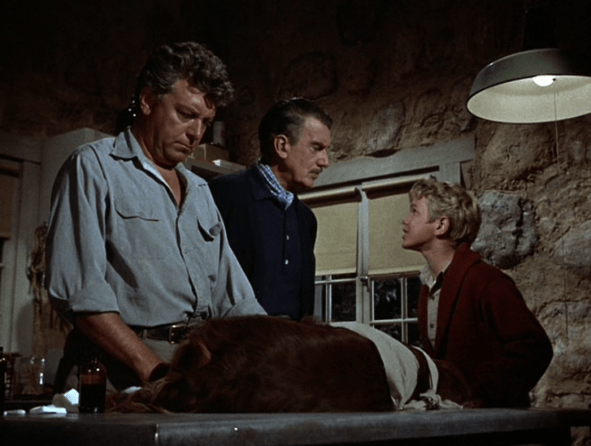 Soon enough, Big Red gets so devoted to Rene that he doesn’t listen to any of Mr. Haggin’s commands during training. So Mr. Haggin forbids Rene from spending time with Big Red which hurts both the boy and the dog. Unable to stay away though, Rene goes up to the window of the villa to say goodbye to Big Red, but Big Red jumps out of the window to see Rene resulting in him injuring himself. Big Red is in a bad state and doesn’t seem like he’ll make it out of there alive, so Mr. Haggin tells Emile to put him down.