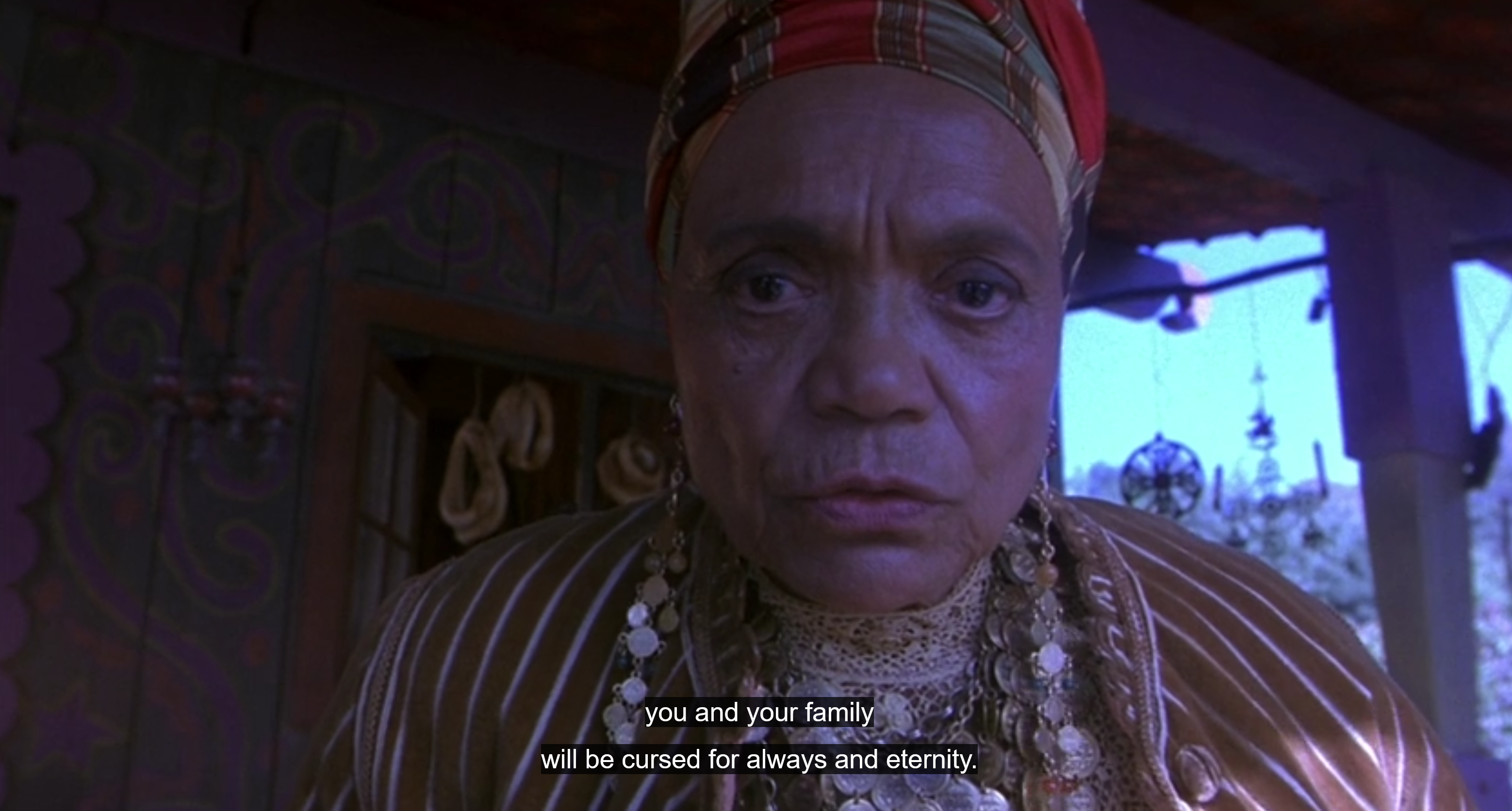 As for the curse, it started in Latvia with one of Stanley’s ancestors named Elya Yelnats who fell in love with a girl and wanted to marry her. He goes to the local shaman lady, Madame Zeroni, played by Eartha Kitt, for advice. She tells him he must take a piglet up the mountain every day until it becomes big and strong and then must come back and take Madame Zeroni up the mountain. He does this with the pig, but the girl ends up marrying someone else, so he gets despondent and moves to America. Because he didn’t take Madame Zeroni up the mountain, he and all his descendants are cursed.