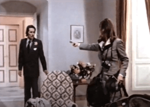 She then notices in the papers that there was a yacht explosion which killed the Arabs who kidnapped her the previous day. She informs Terry when he arrives at the hotel and wants him to take her to the police. He tells her that she’ll be under more suspicion as she was the last one to see the Arabs alive. She sees the sense in this and decides to do a little snooping on her own complete with trenchcoat and fedora.