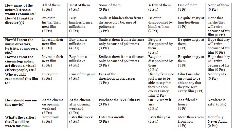 3. Huge Disney movie and film fan, love the site. Great ranking system! Been trying to develop one for myself that is a little more detailed then the usual 4 stars or 5 stars. Hope you don’t mind I added a link to your site in β€œMy Favorite Links” section of my blog.